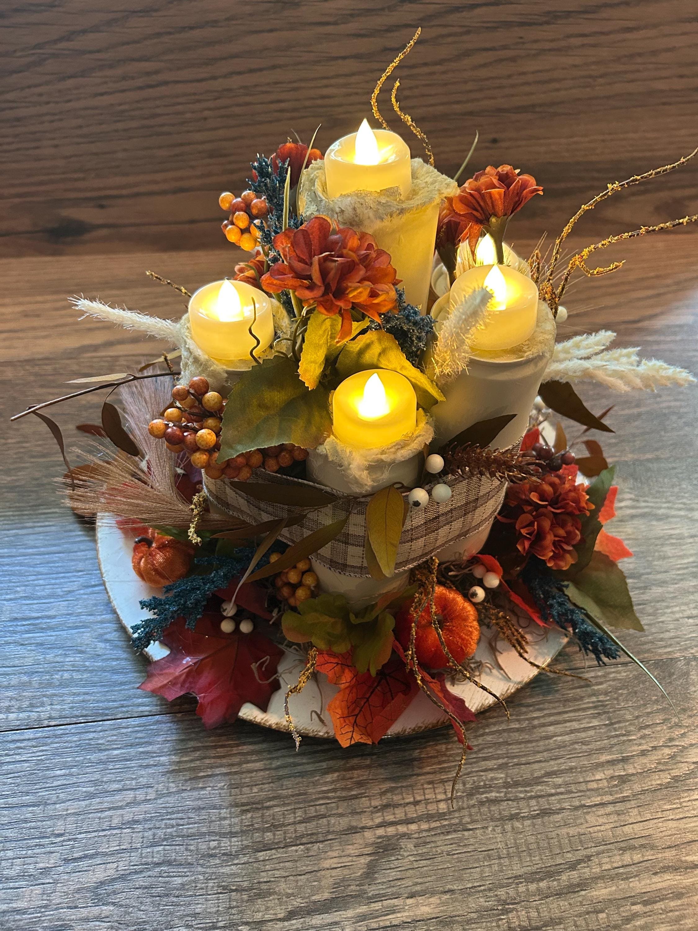 Bring timeless charm to your seasonal decor with this classic and elegant autumn centerpiece. Thoughtfully crafted from recycled aluminum cans, it’s a beautiful blend of sustainability and style. Featuring a harmonious arrangement of mini pumpkins, dried florals, and cozy plaid accents, this piece evokes the warmth and richness of fall. Perfect for Thanksgiving tables, entryway displays, or cozy living room setups, this centerpiece is more than decor—it’s a statement of grace and green living.