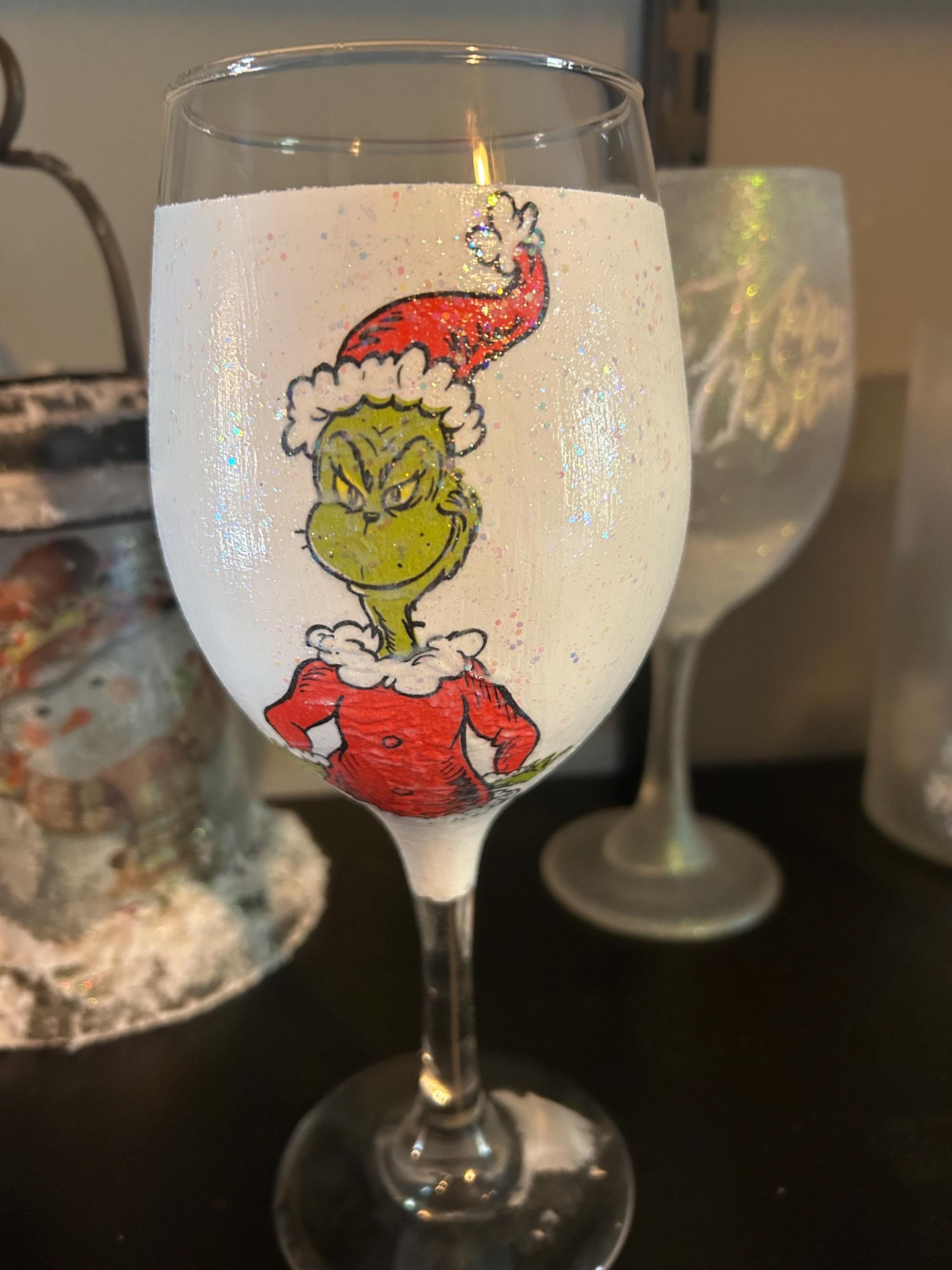 Celebrate the season with this charming hand-painted wine glass, featuring a whimsical winter statement complete with glittery snow, and a festive colors. Whether you’re decking the halls or gifting holiday cheer, this glass brings personality and sparkle to every pour.