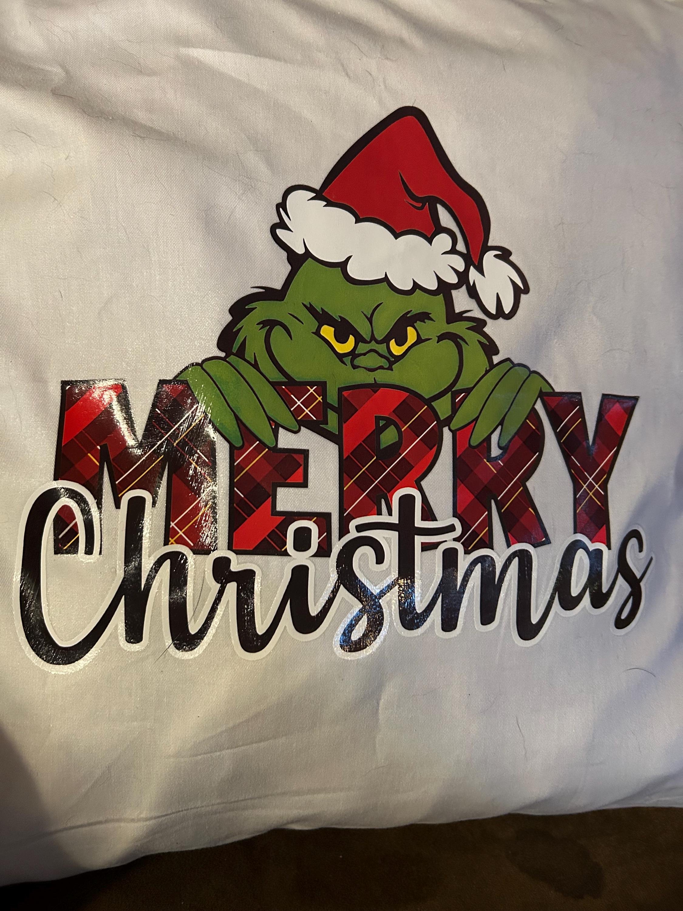 • Stunning Grinch illustration with vibrant red and green “MERRY GRINCHMAS” lettering