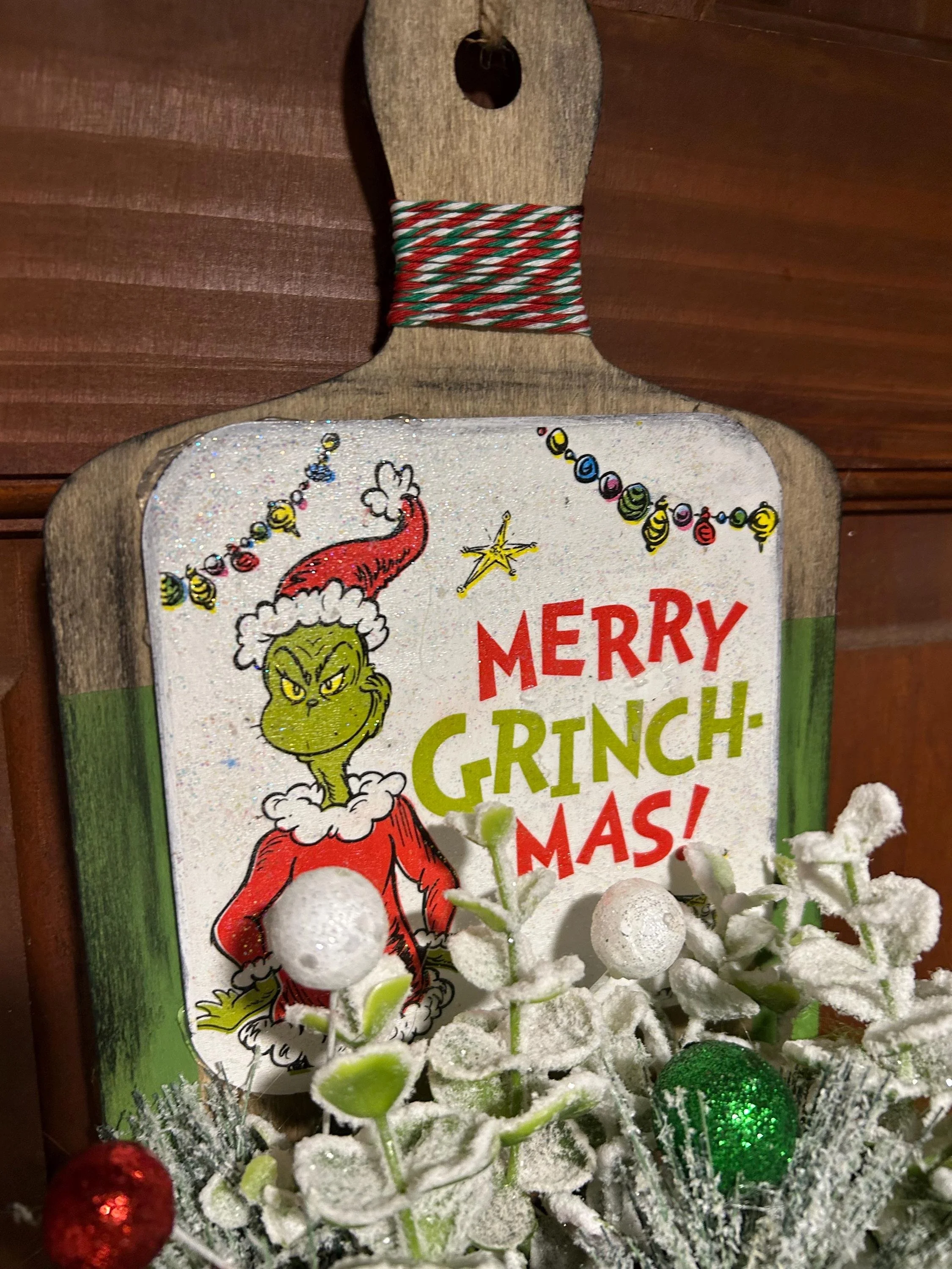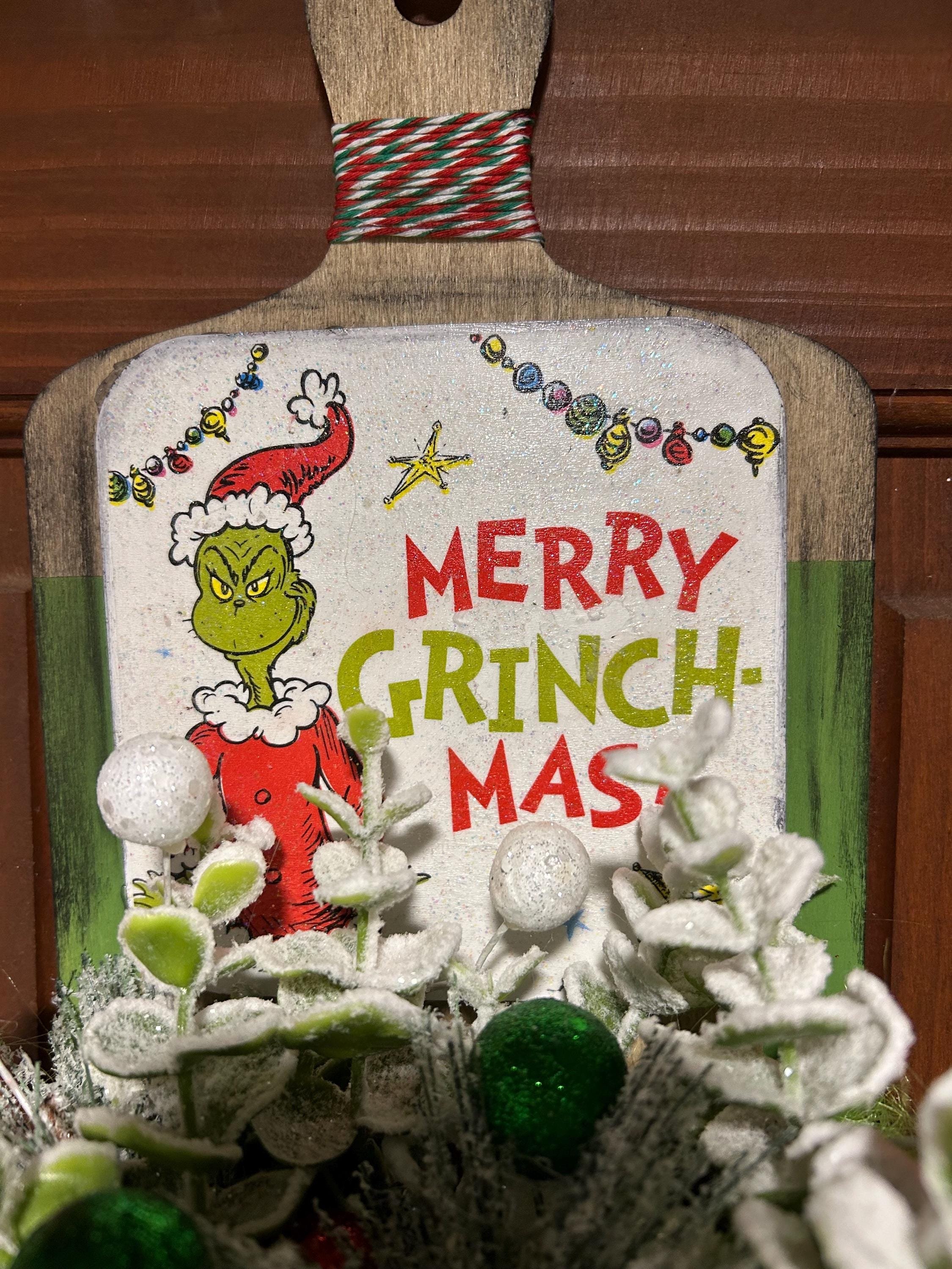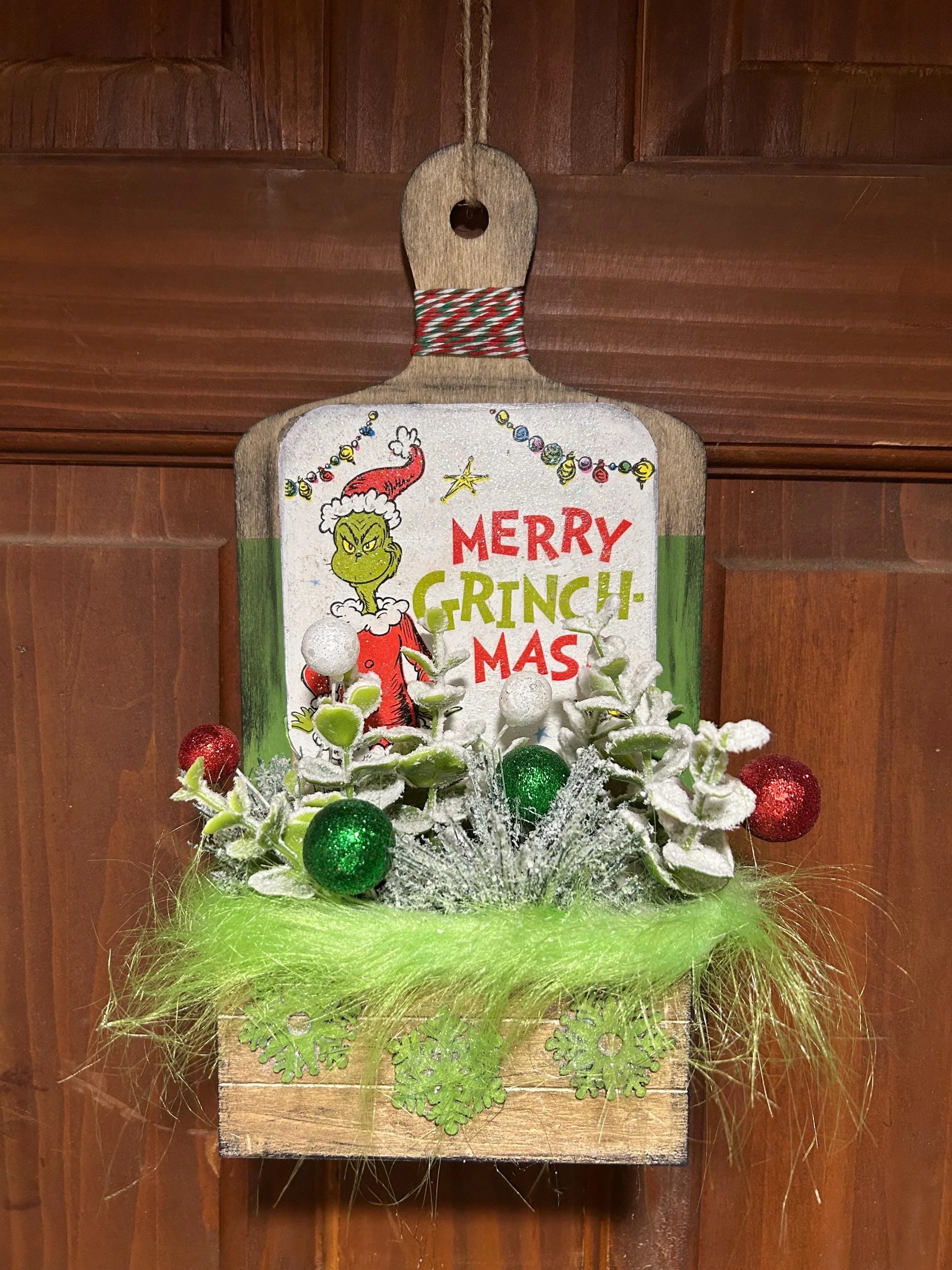Bring a dash of mischief and holiday cheer to your space with this handcrafted “Merry Grinchmas” decoration! Whether perched on a shelf or hung on the wall, this playful piece is sure to steal the spotlight—without stealing Christmas.