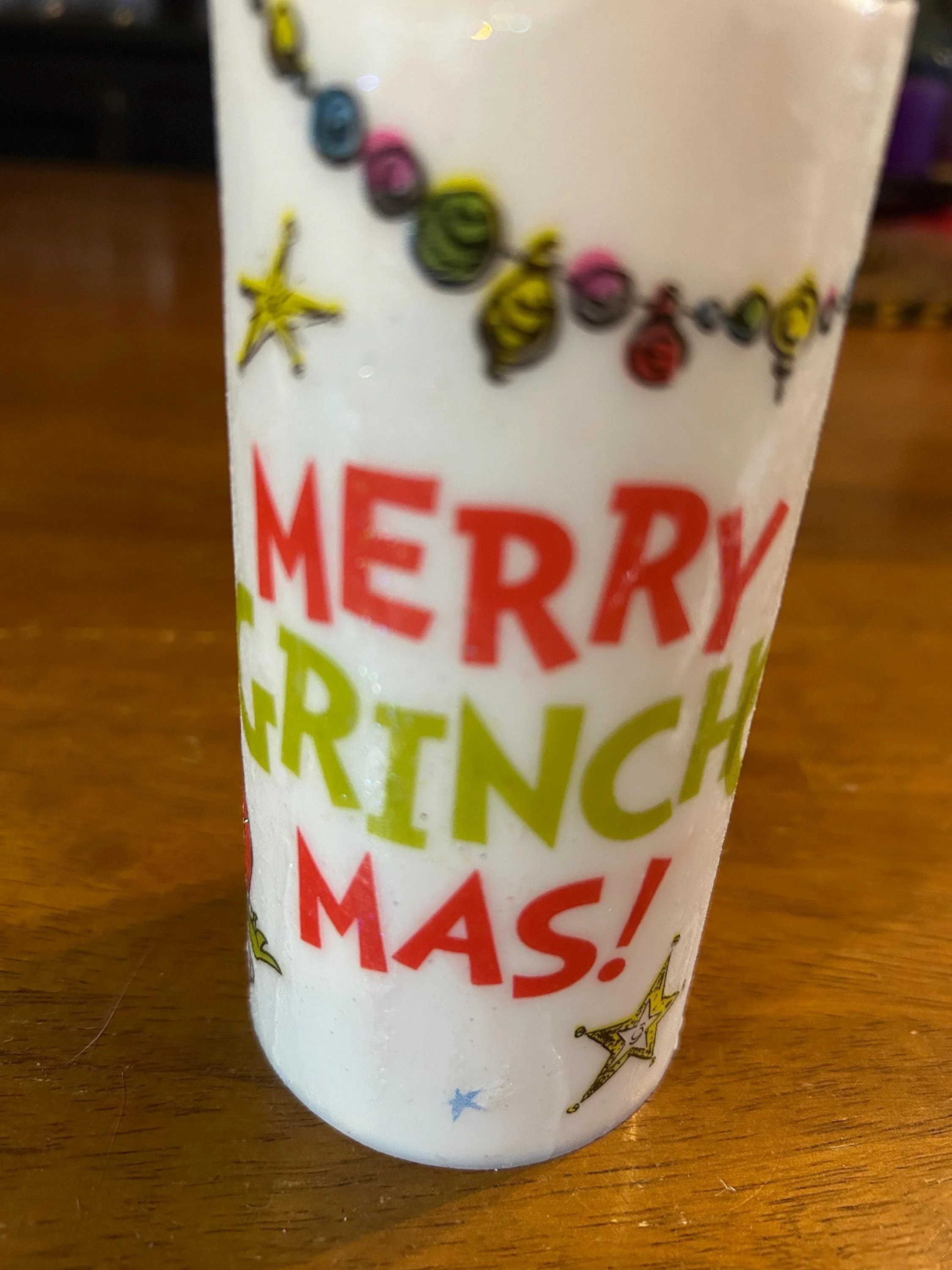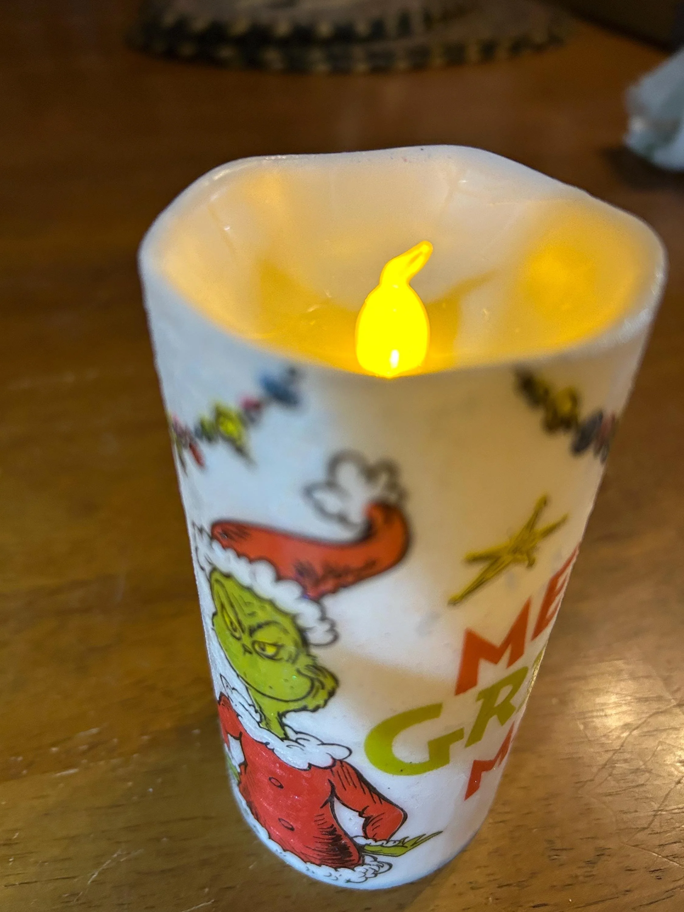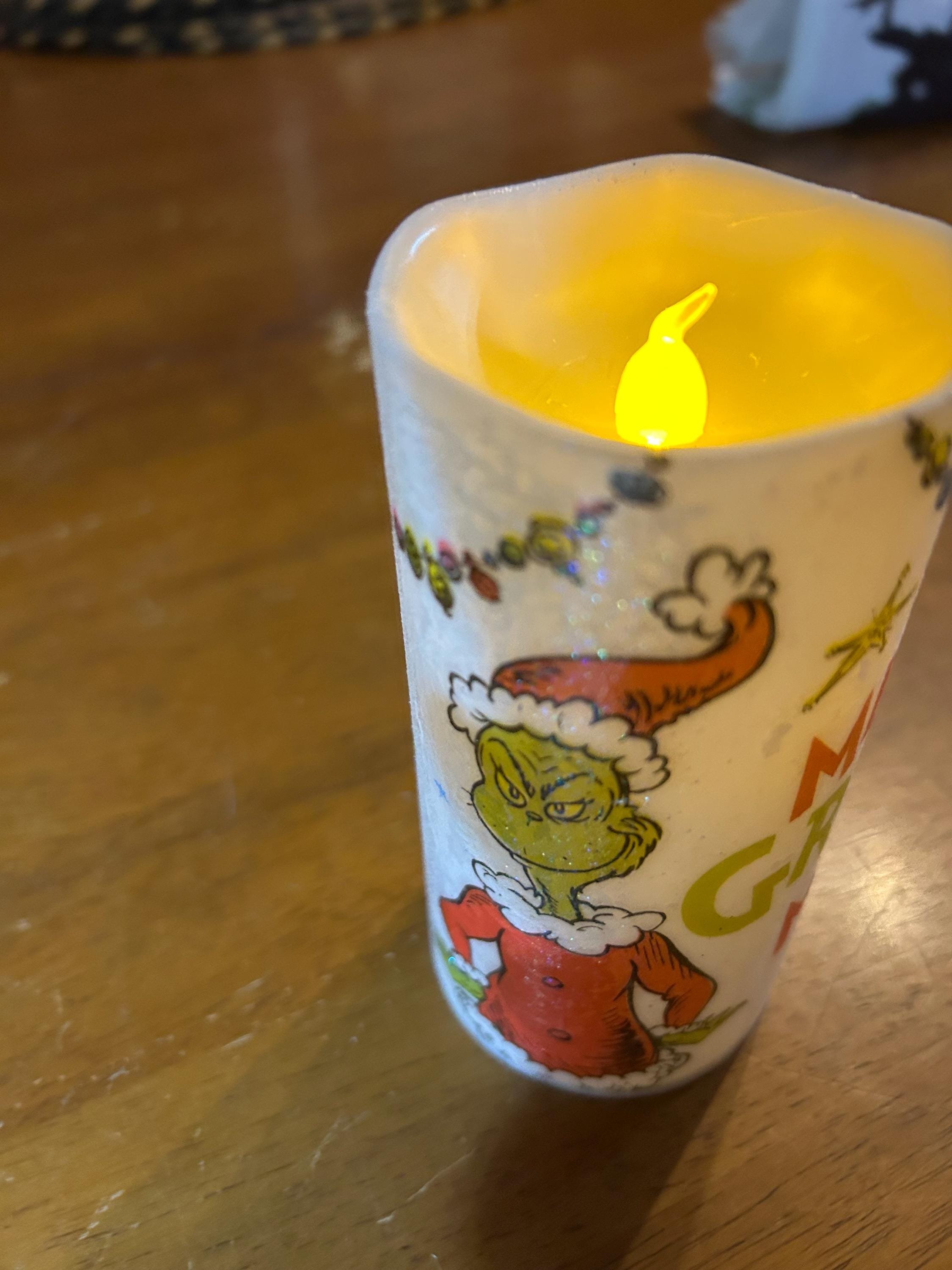 🎄 MERRY GRINCHMAS Flameless LED Candle – 6”x3”
