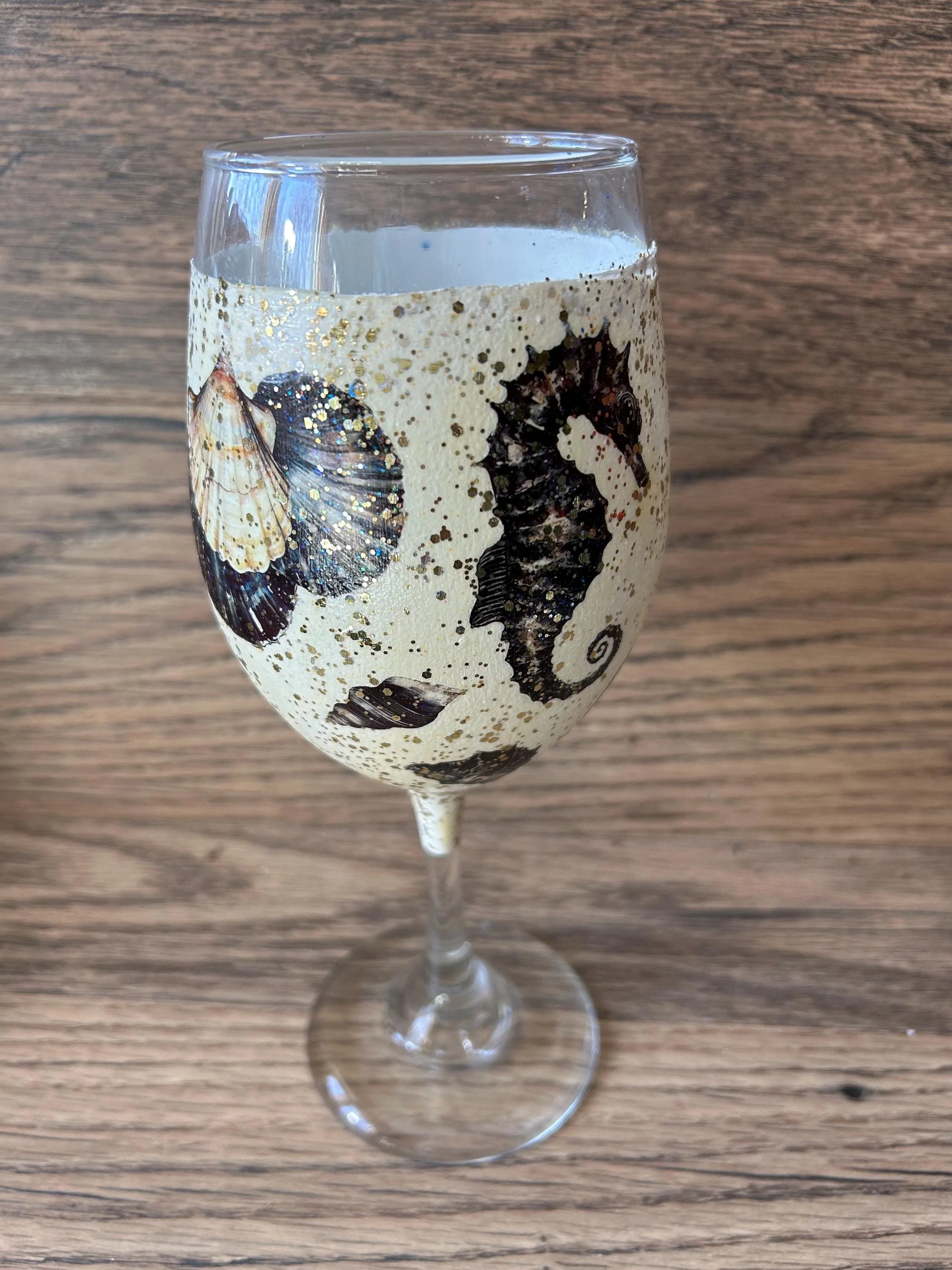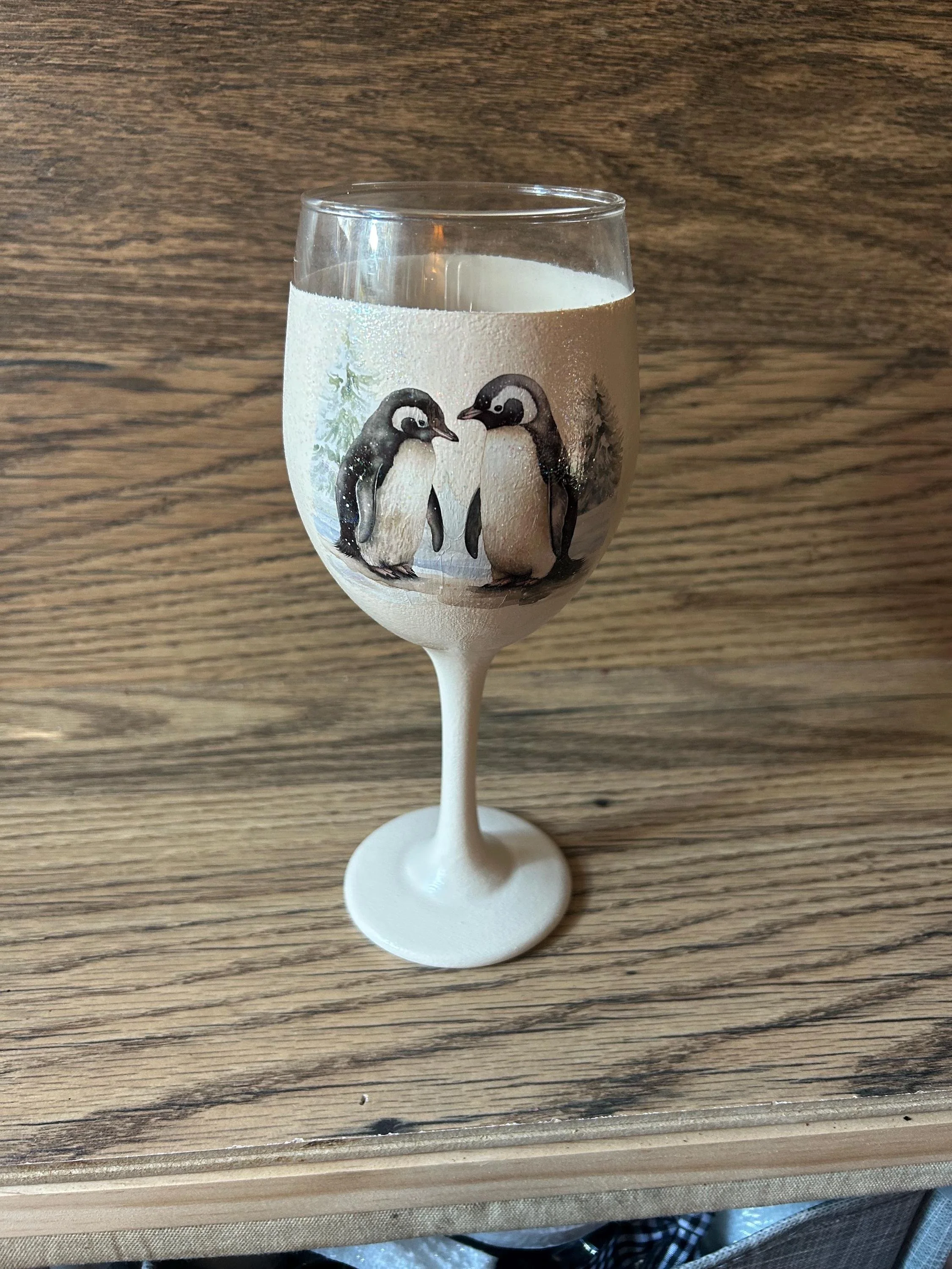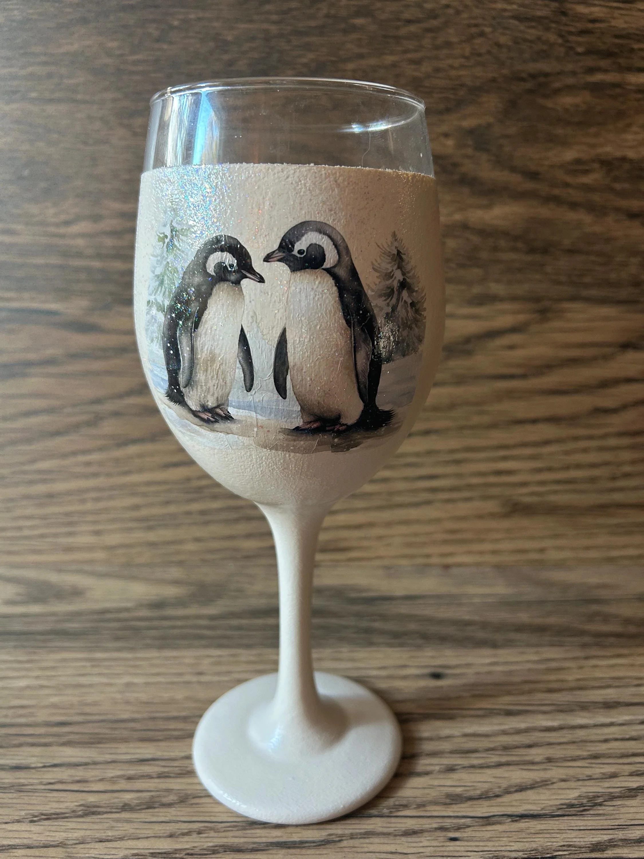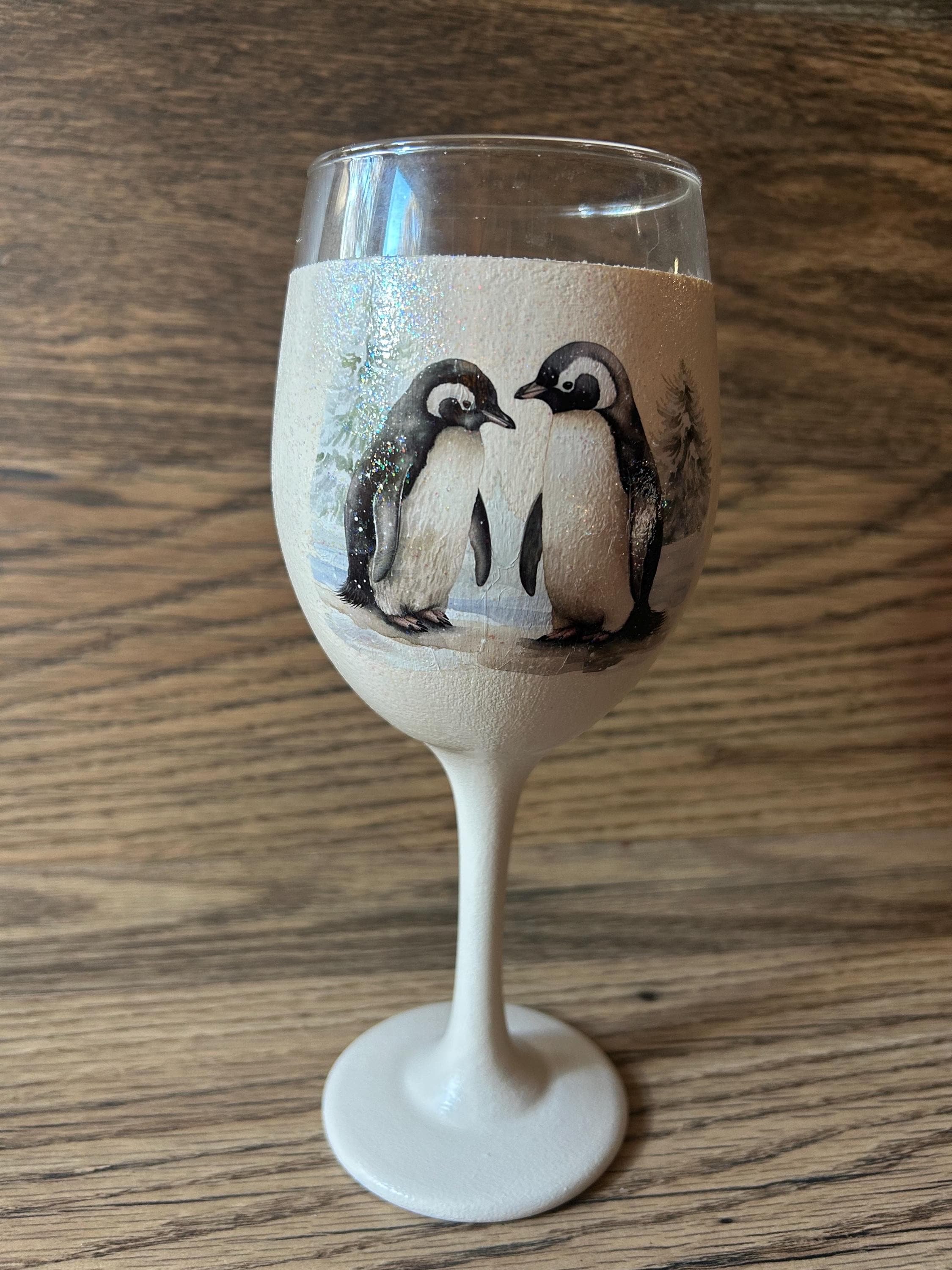 Celebrate the season in style with this charming wine glass, featuring a cozy winter scene that brings warmth to any holiday gathering. Each glass showcases intricate artwork with glittering accents, including: