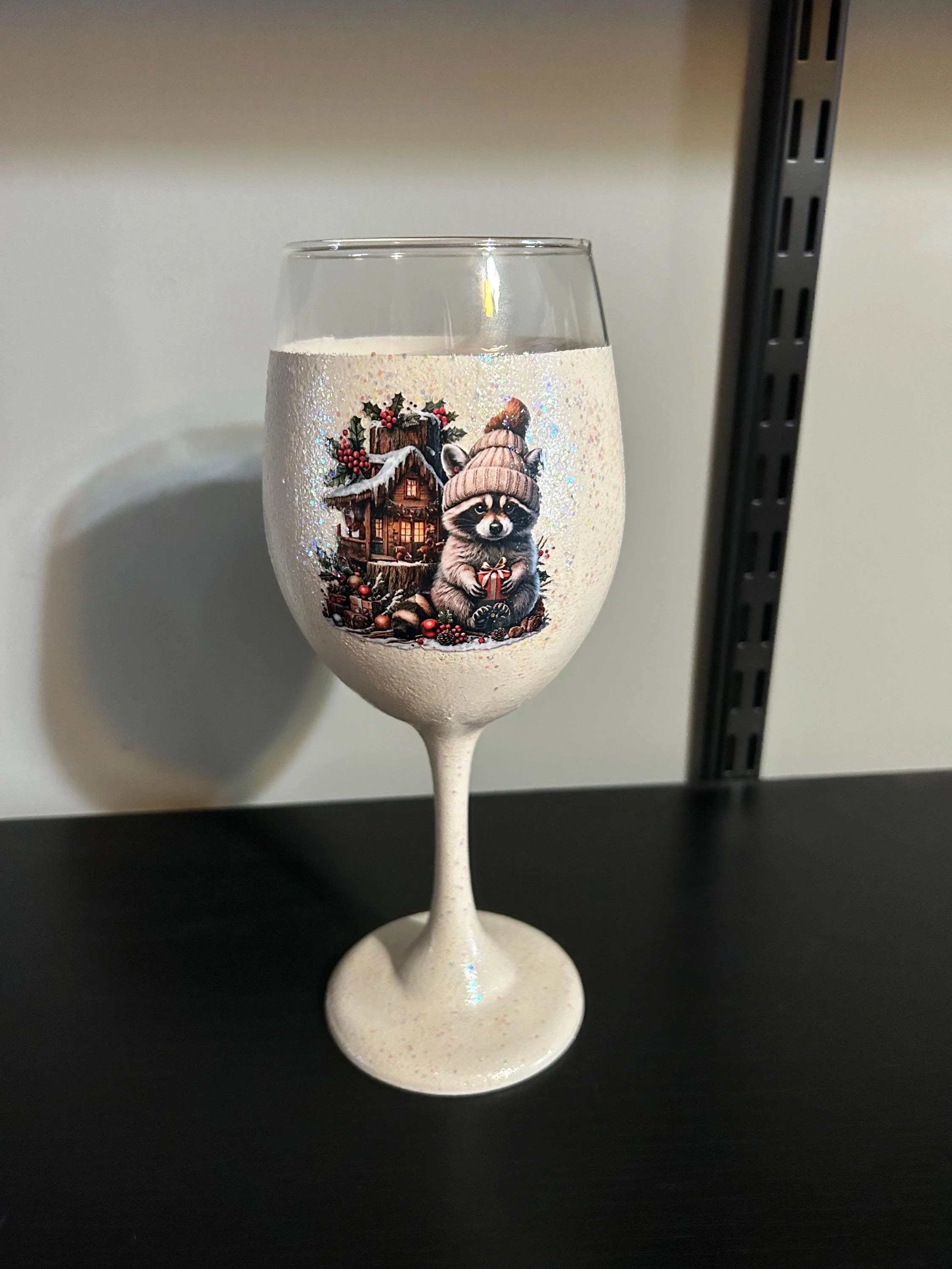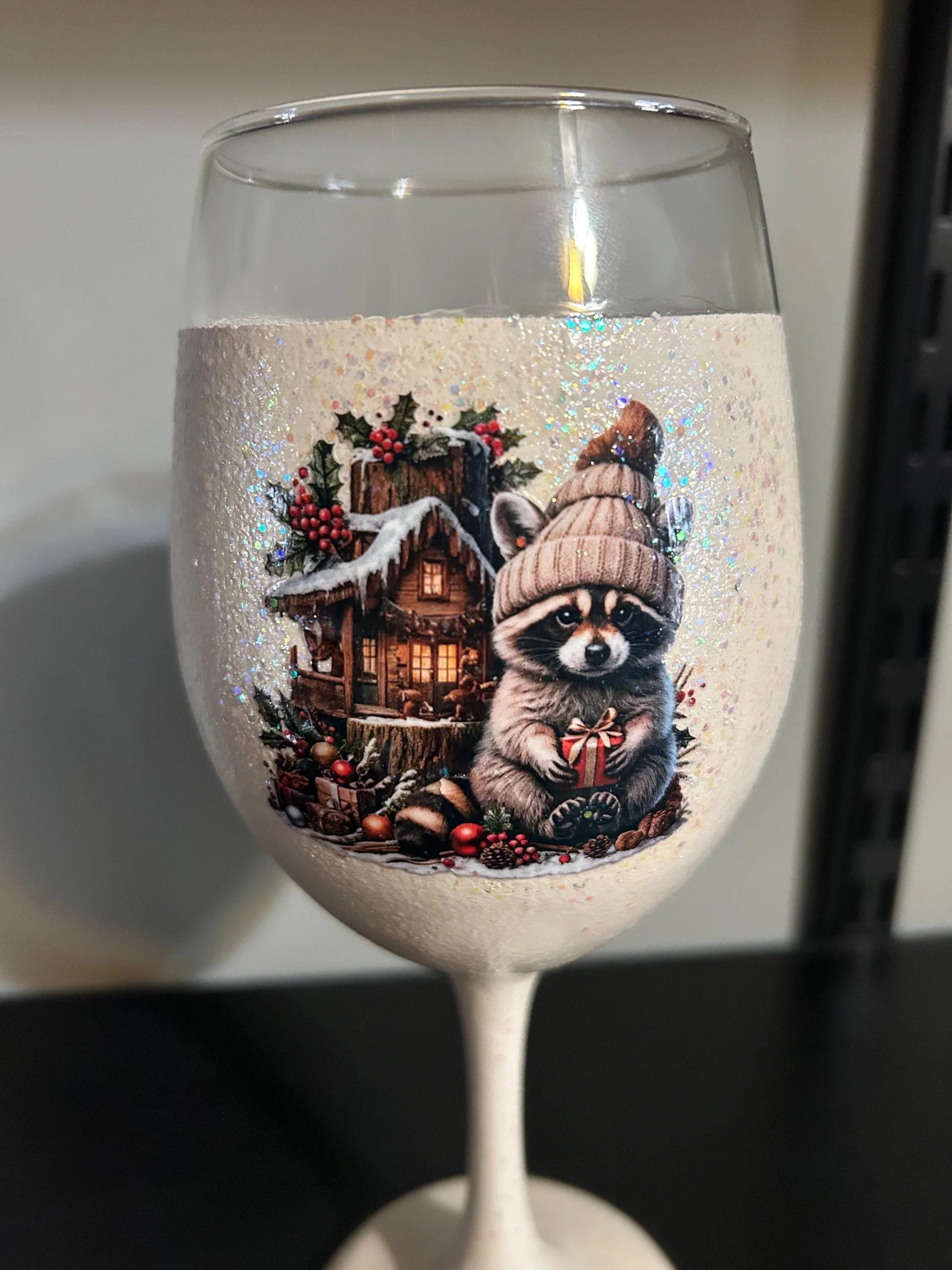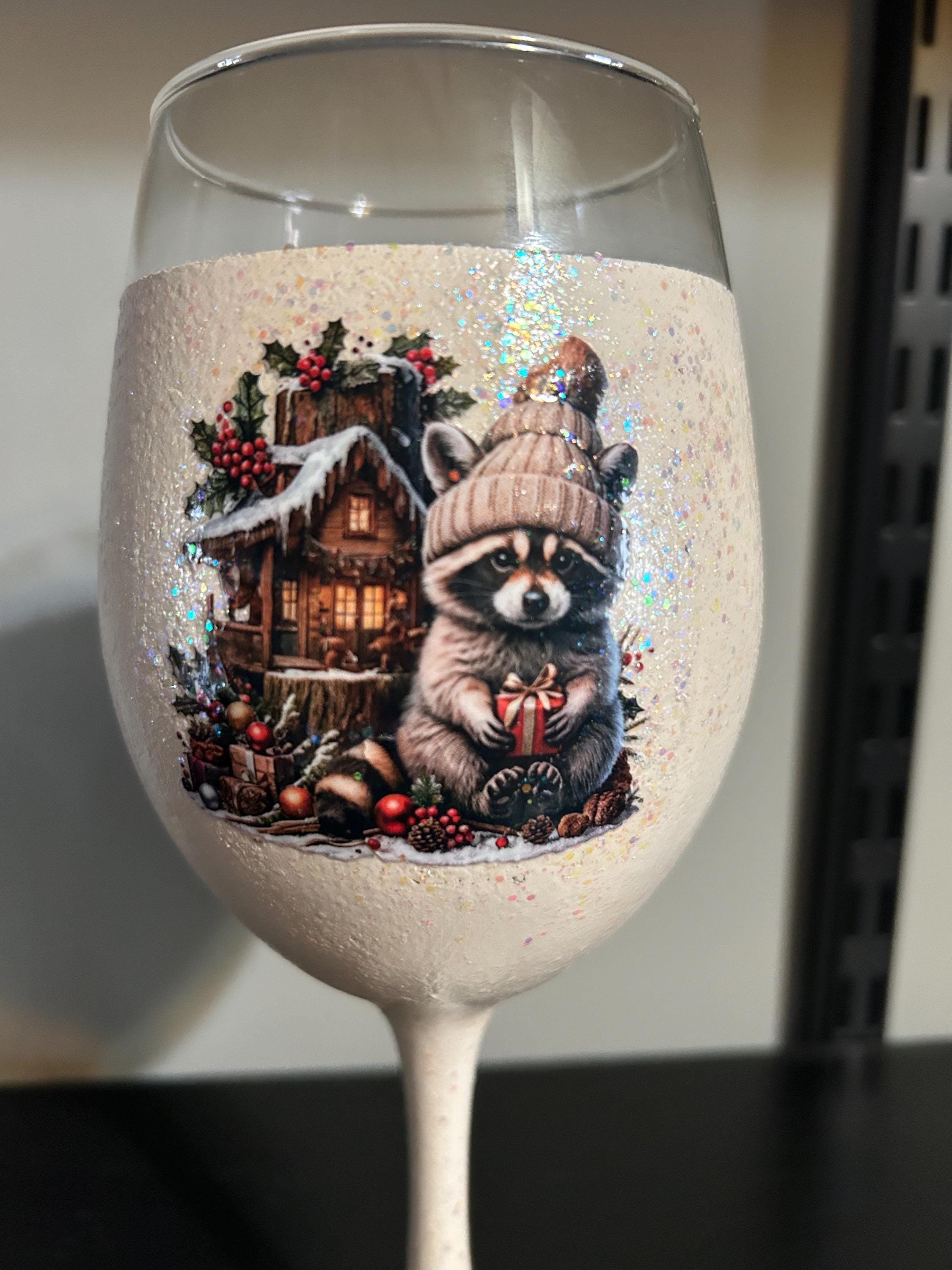 🎄 Racoon Wine Glass – Woodland Holiday Design